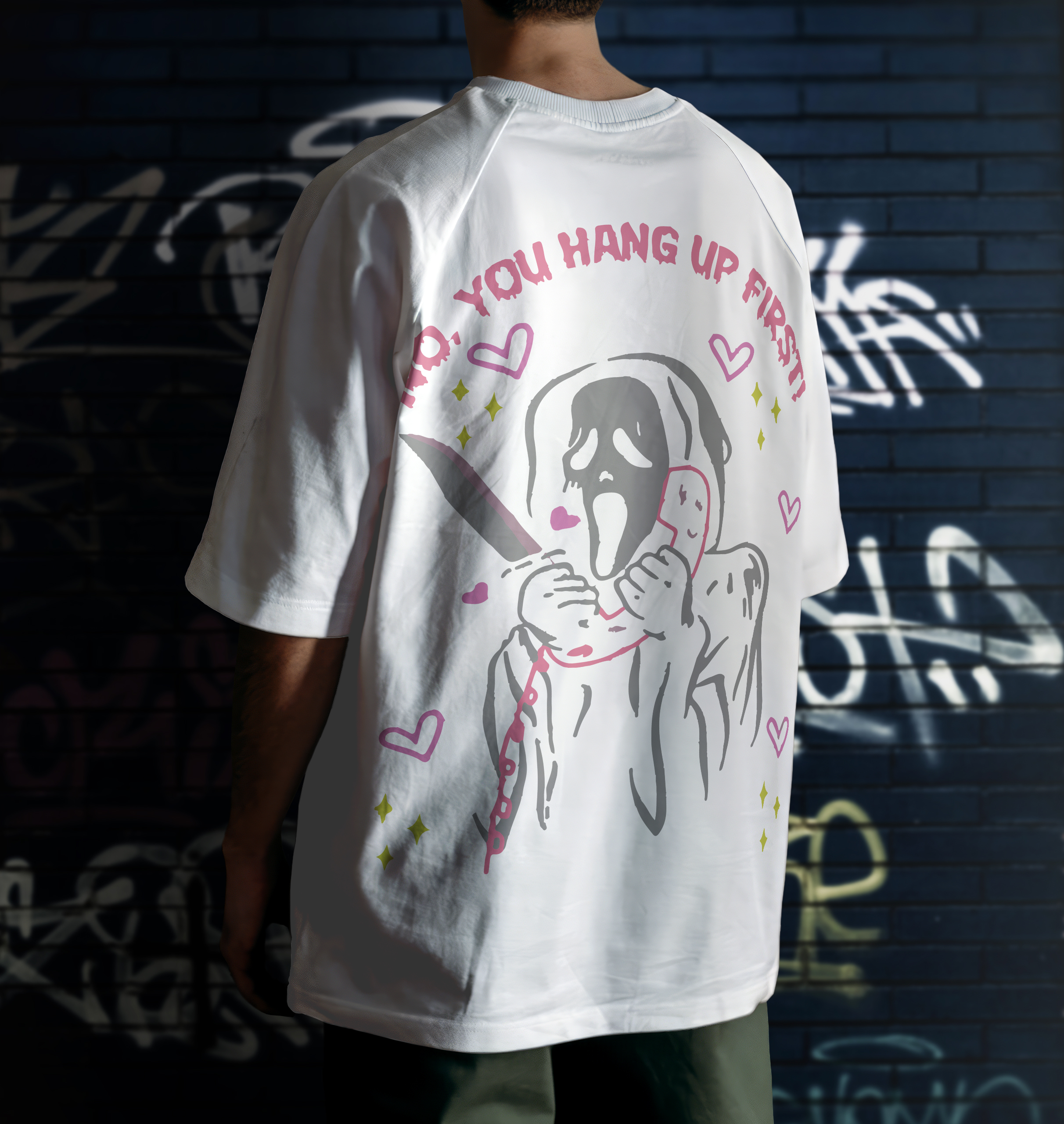 This white T-shirt features Free Size the playful phrase “No You Hang Up First” printed prominently, offering a casual yet expressive style. Designed in a free size, it provides a comfortable and adaptable fit for various body types. Made from quality fabric, it ensures durability and comfort for everyday wear while making a fun statement.